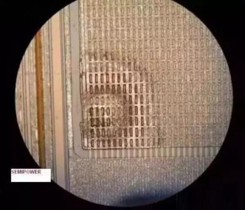 可能我們經(jīng)常要求器件生產(chǎn)廠家對我們電源板上的MOSFET進行失效分析,大多數(shù)廠家都僅僅給一個EAS.EOS之類的結(jié)論,那么到底我們怎么區(qū)分是否是雪崩失效呢,下面是一張經(jīng)過雪崩測試失效的器件圖,我們可以進行對比從而確定是否是雪崩失效。