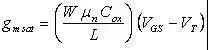 ②在飽和電流IDsat一定時:飽和跨導gmsat卻與飽和電壓(VGS-VT)成反比: