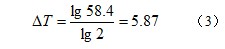 圖1左3的封裝形式的常溫/高溫壽命比值為58.4倍,對應的壽命減半的溫度差ΔT為: