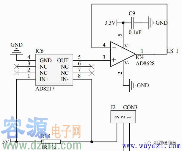 AD8628內部有輸入保護,所以當輸入大于3.3V時,也不會損壞放大器,而且,我使用的范圍,電壓不會超過2V,所以不會丟失有用信息,這里只是起到一個萬無一失保護作用。