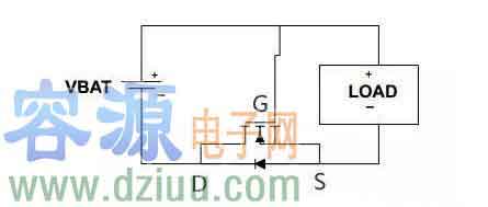 正確連接時:剛上電,MOS管的寄生二極管導(dǎo)通,電源與負(fù)載形成回路,所以S極電位就是VBAT-0.6V,而G極電位是0V,PMOS管導(dǎo)通,從D流向S的電流把二極管短路。