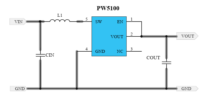 PW5100 是一款高效率、低功耗、低紋波、高工作頻率的 PFM 同步升壓 DC/DC 變換器。PW5100 僅需要三個外圍元件,就可將低輸入電壓升壓到所需的工作電壓。輸入電壓范圍0.7V-5V范圍,最大輸出電流600MA