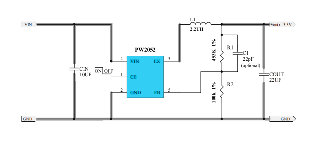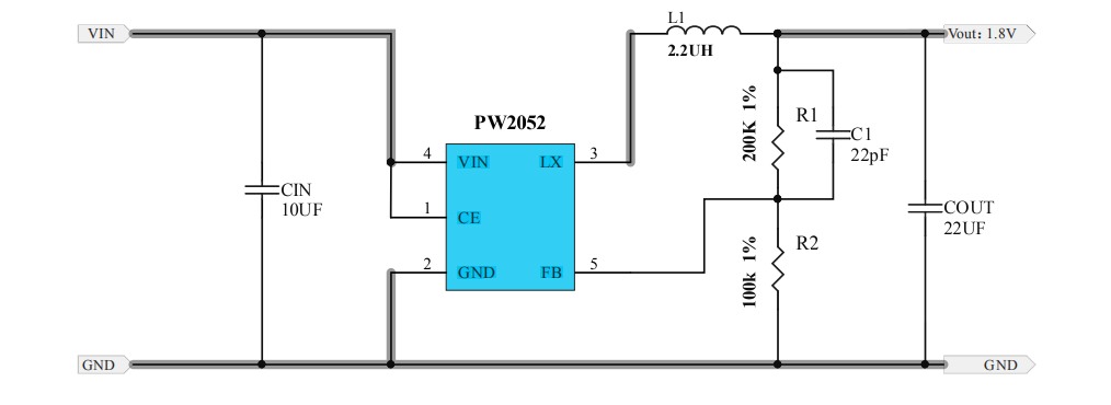 0.8A,4.5V-55V輸入,異步降壓調節器PW2558及典型應用