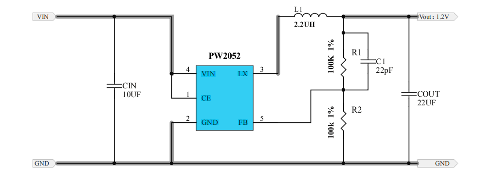 PW2052是一種高效率、高頻同步DC-DC降壓調節器。100%的人占空比特性提供低壓差操作,延長便攜式系統的電池壽命。內部同步開關提高了效率," />