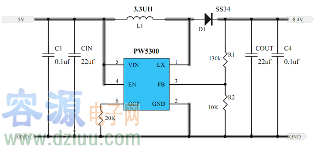 5V升壓8.4V電路圖,SOT23-6封裝