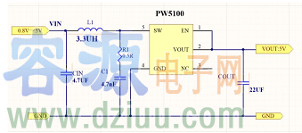 PW5100 的工作頻率高達(dá) 1.2MHz,其目的是為了能夠減小外部的電感尺寸和輸出電容容值,故 PW5100 只需要 1uH 以上的電感就可以保證正常工作,