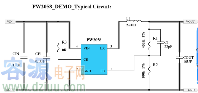 但是輸出端如果需要輸出大電流負載(例如:輸出電流大于 200mA),為了提高工作效率,建議使用較大一點的電感。