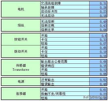 常用電子元器件故障分布 這里總結摘錄MIL-HDBK-338B,美軍可靠性設計手冊來為FTA做一些支持,這里按照以下的方式介紹: 如果我們想要進行FTA的定量分析,一定要把可靠