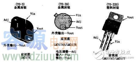 圖1給出了幾種常用(不同封裝形式)的LM317的外形及引腳排列圖。