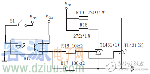 基于TL431的下均衡電路如圖3所示。當開關斷開時,由于光耦817前級沒有開通,因此光耦后級電路也就無法工作,電池工作在正常的放電狀態;當開關閉合時,后級光耦隨前級光耦的開通也相繼開通,電路通過功耗電阻R18耗能來降低電池電壓直到保護芯片送出低電平給保護芯片,迫使電池電壓穩定在其下限限制電壓Vmin,從而達到下均衡的目的。