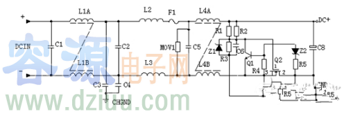 輸入濾波電路:C1、L1、C2、C3組成的雙π型濾波網絡主要是對輸入電源的電磁噪聲及雜波信號進行抑制,防止對電源干擾,同時也防止電源本身產生的高頻雜波對電網干擾。當電源開啟瞬間,要對C5充電,由于瞬間電流大,加RT1(熱敏電阻)就能有效的防止浪涌電流。因瞬時能量全消耗在RT1電阻上,一定時間后溫度升高后RT1阻值減小(RT1是負溫系數元件),容源電子網m.zskn.com.cn這時它消耗的能量非常小,后級電路可正常工作。容-源-電-子-網-為你提供技術支持