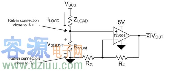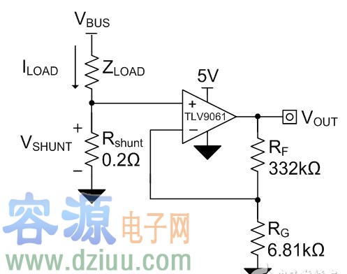 圖1是之前的博客文章引用的低側電流感應電路原理圖,圖一中使用的是TLV9061超小型運算放大器。