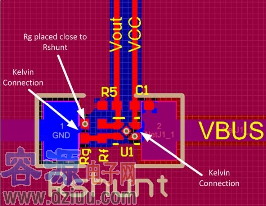RG盡可能放置在靠近分流電阻(Rshunt)接地端的地方。