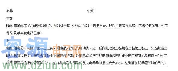 當保護二極管開路時,對繼電器電路工作狀態沒有大的影響,但是沒有了保護作用而很有可能會擊穿驅動管;當保護二極管短路時,相當于將繼電器線圈短接,這時繼電器線圈中沒有電流流過,繼電器不能動作。