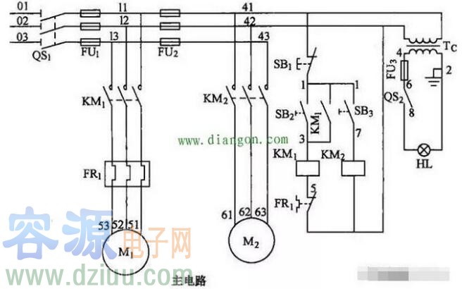 識讀電氣圖時應按照先看主電路,再看控制電路的順序。看主電路時,通常從下往上看,即從用電設備開始,經控制元器件、保護元器件依次看到電源。通過看主電路,要搞清楚用電設備是怎樣取得電源的,電源是經過哪些元器件到達負載,這些元器件的規格、型號、作用是什么。