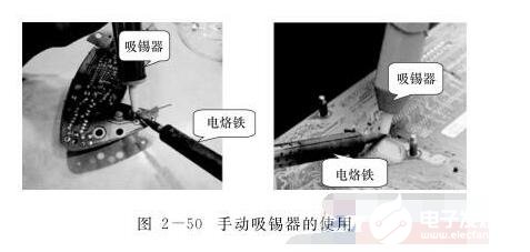 2、然后,用烙鐵對(duì)接點(diǎn)加熱,使接點(diǎn)上的焊錫熔化,同時(shí)將吸錫器靠近接點(diǎn),按下吸錫器上面的按鈕,可將焊錫吸上。