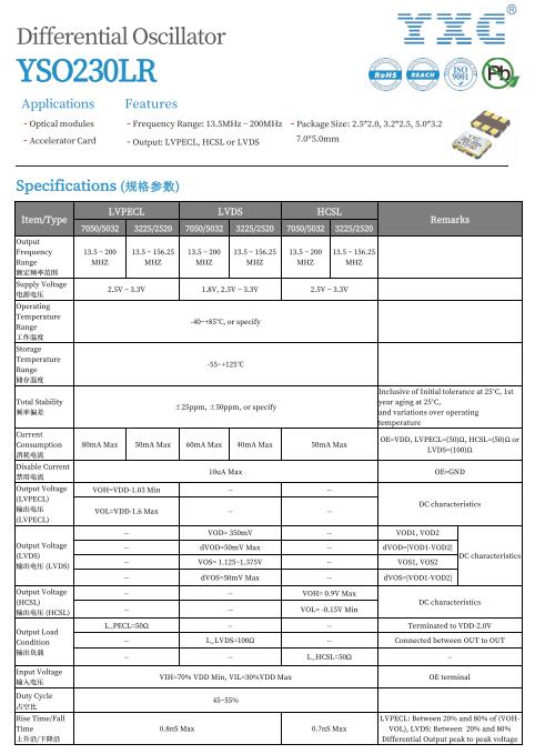 YXC晶振YSO230LR系列,頻率為148.5MHz,總頻差±50PPM,以下為YSO230LR系列規格書。