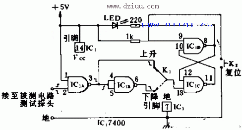 用K2使電路復位。根據K1的選擇,本電路可以對正脈沖或負脈沖作出響應。本文由m.zskn.com.cn整理提供,部分內容來源于網絡,如有侵犯到你的權利請與我們聯系更正。