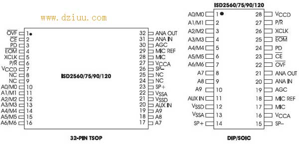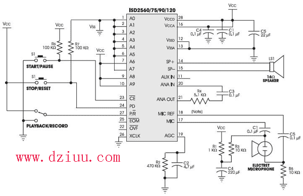ISD2560P/ISD2575/ISD2590/ISD25120應(yīng)用電路圖
