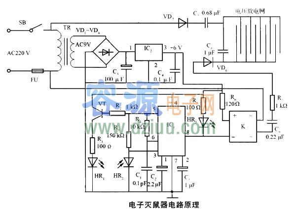 電子電鼠器電路原理圖,驅(qū)鼠器電路圖 <<版權(quán)聲明:本文由容源電子網(wǎng)(www_dziuu_com)整理提供,部分內(nèi)容來源于網(wǎng)絡(luò),如有侵犯到你的權(quán)利請與我們聯(lián)系更正。》