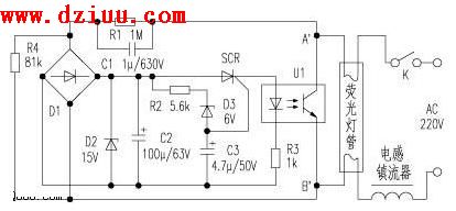 該電子啟輝器原理圖如附圖
