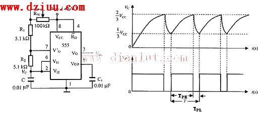 ,復位端④也可輸入1個控制信號。復位端④為低電平時,電路停振。《版權聲明:本文由m.zskn.com.cn整理提供,部分內容來源于網絡,如有侵犯到你的權利請與我們聯系更正。》