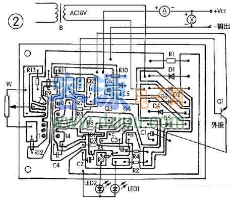 LM723、MC1723等。印刷電路見圖。 <<版權(quán)聲明:本文由容源電子網(wǎng)(www_dziuu_com)整理提供,部分內(nèi)容來源于網(wǎng)絡(luò),如有侵犯到你的權(quán)利請(qǐng)與我們聯(lián)系更正。》