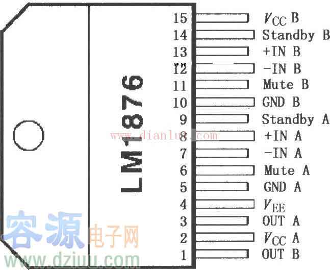 LM1876立體聲功率放大器引腳功能