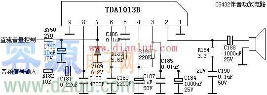 TDA1013B引腳功能電壓:在彩電中,TDA1013B很常見,其功能是伴音功放電路,此集成電路應(yīng)用16V供電,單聲道音頻信號放大電路,詳細(xì)電路圖如下: