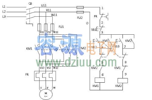 在這里,主電路大家應該部分中,都能看懂,就不講解了,直接說控制電路;控制電路中的FR是熱繼電器動斷開關,SB1為停止按鈕;、 <<容源電子網論壇正式上線,為朋友們建立一個友好互動交流平臺,歡迎大家去論壇和朋友們一起分享、學習電子技術。對本文有什么疑問請直接到論壇相應欄目發貼求助。