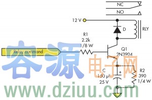 這是一個RC電路,有個串聯線圈,可以控制滿流,使得繼電器可靠地工作,并降低電流,節約功耗。 這個電路的亮點是,只要加兩個最普通的元件,一個電阻和電容,就可以使繼電器線圈
