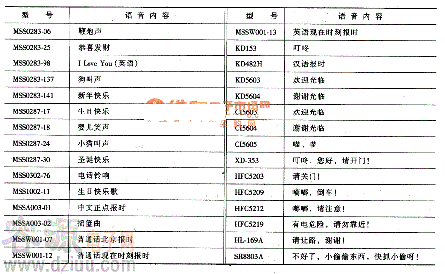 這類語音集成電路將語音信號處理后,以數字碼形式存儲在只讀存儲器(ROM)中。存儲器ROM分為兩種:一種是掩膜式ROM,這種ROM在工廠中生產時,已用掩膜技術將信息輸入,不能再更改;另一種稱為EPROM,是"一種可擦除式