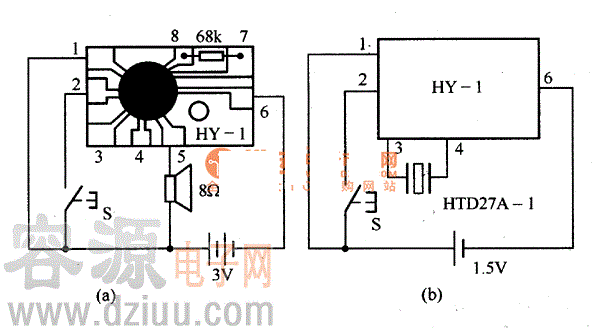 HY系列音樂集成電路受觸發后立即會輸出音樂信號,奏鳴時間為20s。該系列產品外圍元件少,耗電省,且應用靈活,適用于門鈴、玩具、各種呼叫及報警裝置。該系列產品型號較多,下面僅介紹其中的一部分型號。 (1