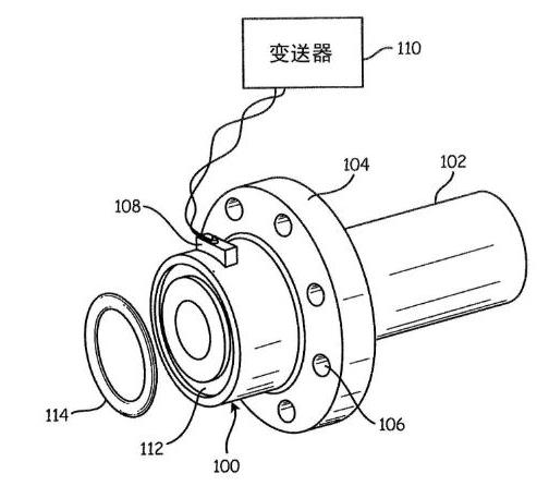 在這種情況中,使用無法蘭的或晶片型磁流量計。晶片型磁流量計包括沒有任何法蘭的流管。因此,晶片型磁流量計可以比傳統的法蘭磁流量計更經濟、更緊湊和更輕。可購買到的晶片型磁流量傳感器的一種示例是可從Emerson Process Management(愛默生過程管理公司)購買到的、以商業指定型號8711晶片傳感器進行售賣的。當磁性晶片傳感器與適當的變送器電子器件(如以商業指定型號8732E、型號8712E、或8712H售賣的那些變送器電子器件)配對時,可提供完整操作的晶片型磁流量計。