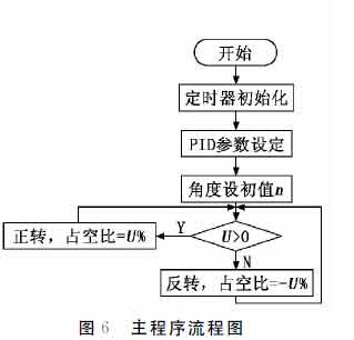 在實時性要求較高的倒立擺系統中,積分作用常常使系統對偏差的調節變慢,使動態相應變慢。因此要盡量弱化或者消除積分作用,使用PD調節規律即可。在該系統中,輸入變量為給定值與實際檢測到角度的差值,輸出變量控制所產生的PWM波形的占空比。由于旋臂、擺桿以及電動機的各項參數很難準確把握,且干擾較多,難以建立精確的數學模型,因此采用試驗法整定參數的數值,即根據系統表現出的狀態,調節各參數的數值,直至系統達到穩定。