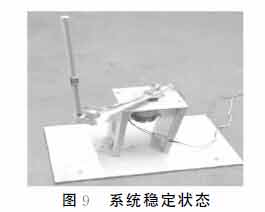 本系統測試所用到的倒立擺模型為自制簡易模型,測試過程如下:外力將擺桿拉起至接近倒立狀態(與倒立狀態相差20°左右);給系統上電,同時撤去外力,觀察到擺桿迅速呈倒立狀態,經過幾次調整,即可長時間保持倒立狀態。系統達到穩定狀態的效果如圖在擺桿保持倒立狀態時,施加一擾動,即輕碰擺桿或旋臂,系統經過短時間的調整之后,仍可以自動調節至穩定狀態,說明該系統具備較強的魯棒性。