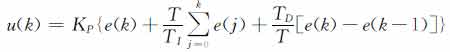 其中:u(k)為第k個采樣時刻的輸出;e(k)為第k個采樣時刻的偏差值;T為采樣周期;KP為比例放大系數;TI為積分時間常數;TD為微分時間常數。