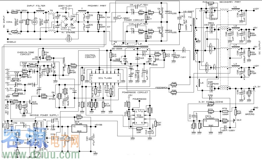 一款典型的ATX電源設(shè)計(jì)電路圖