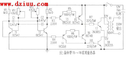 簡易小型逆變器電路圖 <<版權(quán)聲明:本文由容源電子網(wǎng)(www_dziuu_com)整理提供,部分內(nèi)容來源于網(wǎng)絡,如有侵犯到你的權(quán)利請與我們聯(lián)系更正。》