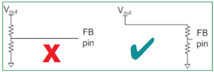 圖10.始終將FB引腳上的電阻分壓器盡可能靠近FB引腳放置。