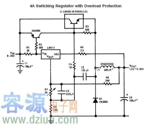 LA6350大功率開關(guān)穩(wěn)壓電源電路圖 電路如圖所示,電路采用該芯片制作的輸出電流可達10A,輸出電壓在5-12V內(nèi)可調(diào)的實用大功率開關(guān)型穩(wěn)壓電源。其工作原理為:220V交流電源經(jīng)