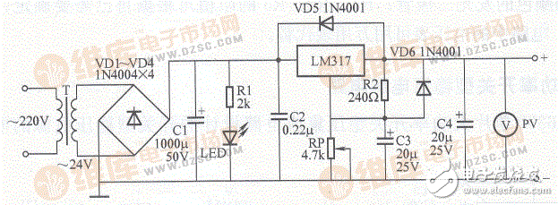 采用三端穩(wěn)壓LM317制作的甲類功放電路