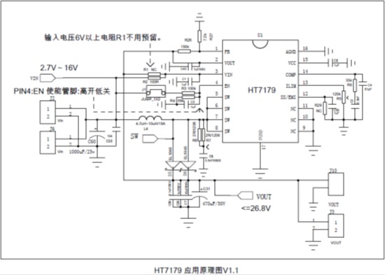 HT7179 12V升24V內(nèi)置MOS大電流升壓IC解決方案