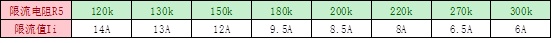 (4). HT7179 pin13(ILIM)對地限流電阻R5對應(yīng)的限流值(峰值)舉例: