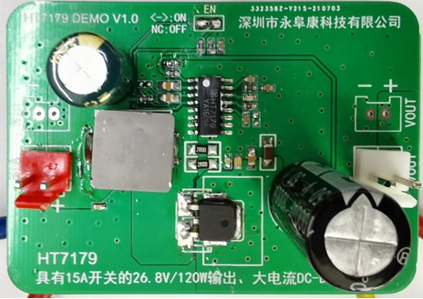 深圳市永阜康科技有限公司針對大功率的DC-DC升壓應(yīng)用需求,推廣一款集成15A開關(guān)管的26.8V、120W輸出、大電流非同步DC-DC升壓IC-HT7179。HT7179采用獨(dú)到的電路研發(fā)技術(shù)以及先進(jìn)的半導(dǎo)體工藝,重載時高達(dá)93%以上的工作效率,無需外加散熱器,升壓到26.8V,可穩(wěn)定輸出120W。