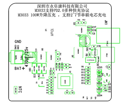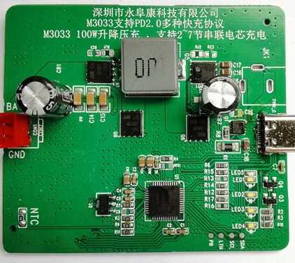 深圳市永阜康科技有限公司現在大力推廣成都水芯電子的一顆內置PD2.0/QC2.0等快充協議多節100W升降壓鋰電充電管理芯片M3033,可支持2-7串鋰電快速充電,滿足多串大容量鋰電池組應用場合。高度集成的芯片設計,可以做成很小體積的成品,應用簡單,直接使用Type-C充電,無需專用充電器、避免資源浪費。