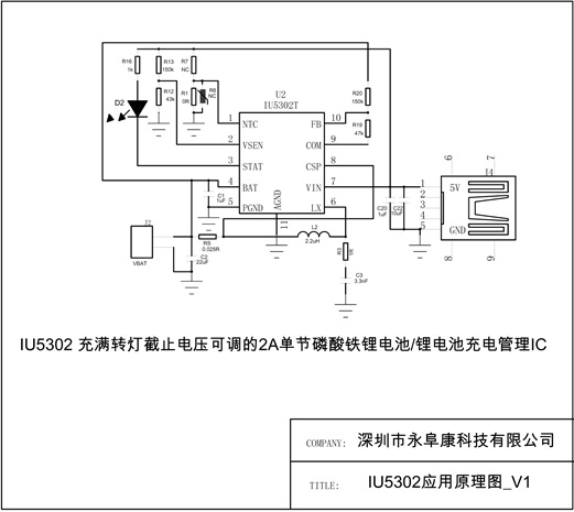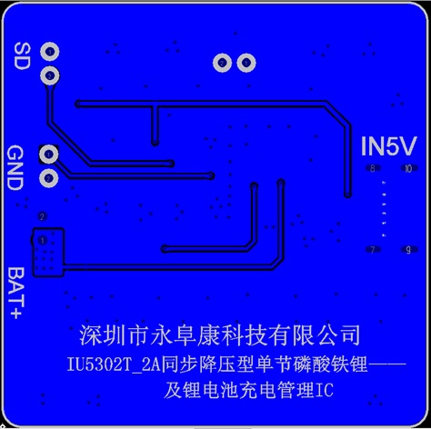 IU5302TC有完善的保護功能,包括輸入欠壓/過壓保護、電池過壓和短路保護、電池溫度保護NTC功能、芯片溫度保護,充電超時保護。此外芯片通過外接的LED指示燈對充電過程實現全程監控。采用 DFN2X2_10L封裝。