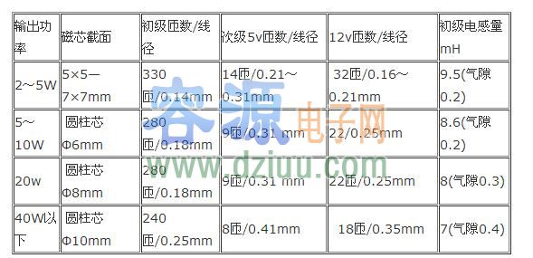 。即使是估算也涉及磁芯材料,結構的影響,限于目前市場產品參數的離散性,業余者也難以確定,此處只列出部分計算結果供參考。小功率開關電源脈沖變壓器制作參數(繞組功能參考附圖)如附表