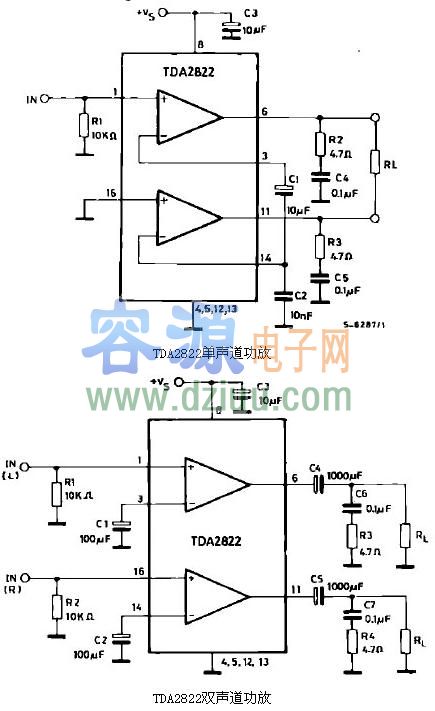 TDA2822是SGS公司生產(chǎn)的低電壓小功率功放集成功放電路,