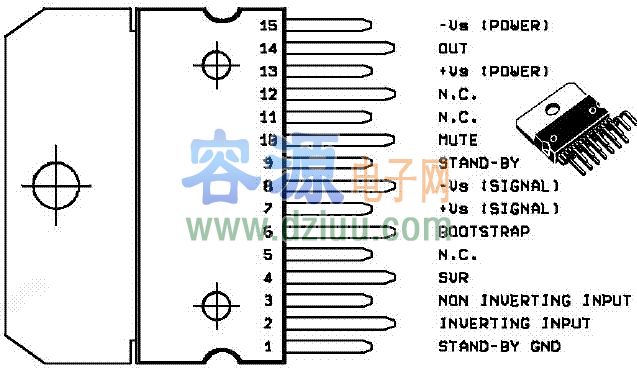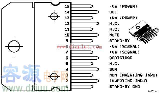 部分);⑨腳為待機(jī)腳;⑩腳為靜音腳;⒀腳為+Vs(末級(jí));⒁腳為輸出端;⒂腳為-Vs(末級(jí))。 <<版權(quán)聲明:本文由容源電子網(wǎng)(www_dziuu_com)整理提供,部分內(nèi)容來源于網(wǎng)絡(luò),如有侵犯到你的權(quán)利請(qǐng)與我們聯(lián)系更正。》